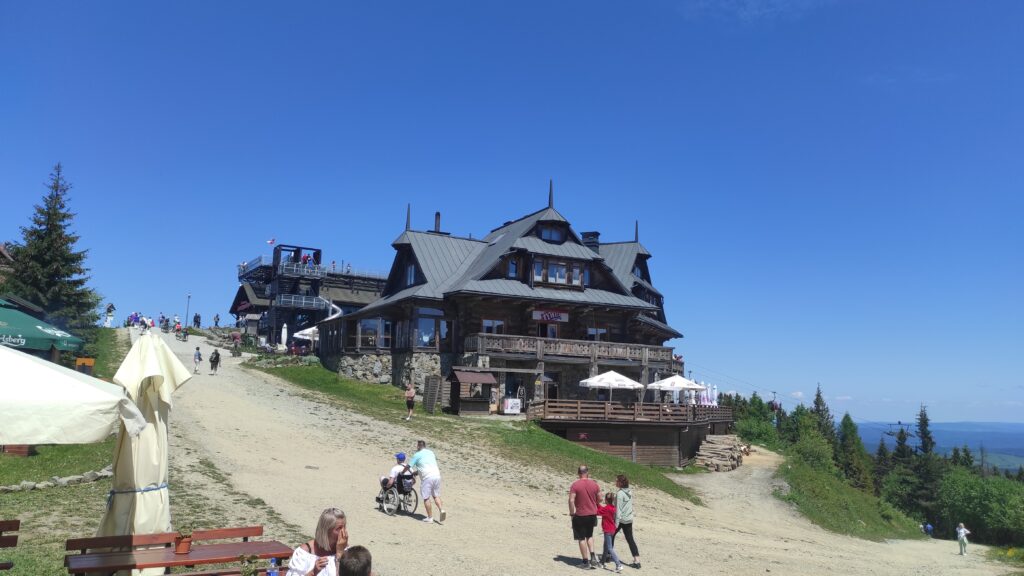Godzina 13, zameldowałem się w Jaworzynie Krynickiej. Dziś niedziela, piękna pogoda to na szczycie tłumy. Ja jak Pan Zagłoba nie lubię tłoku więc zjem coś na szybko i pędzę dalej. Dalej czyli do Krynicy Zdrój.