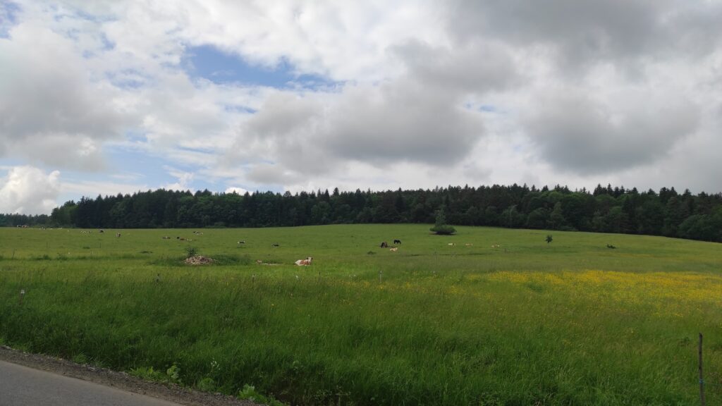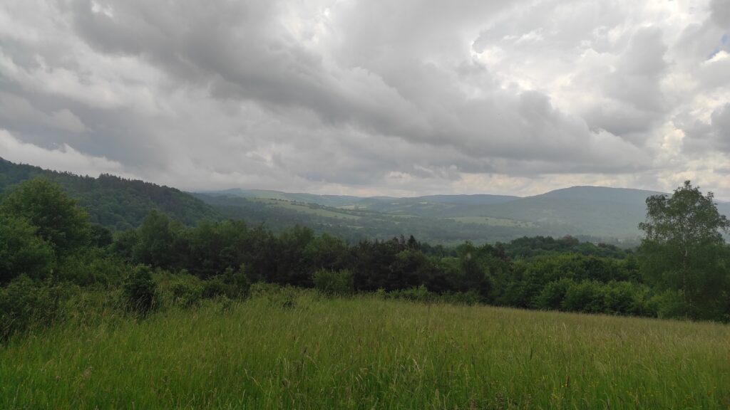 Na razie nie pada. Pogoda jest super i oby tak było chociaż do 16-17. Mimo pochmurnej aury, na otwartych przestrzeniach wyłaniają się całkiem ładne widoki.