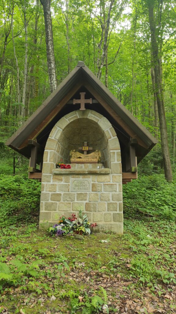 Po niespełna godzinie wędrówki mijamy stację drogi krzyżowej, co jest dla nas znakiem że dotarliśmy do znajdującej się poniżej góry Garb Pustelni Św. Jana z Dukli.