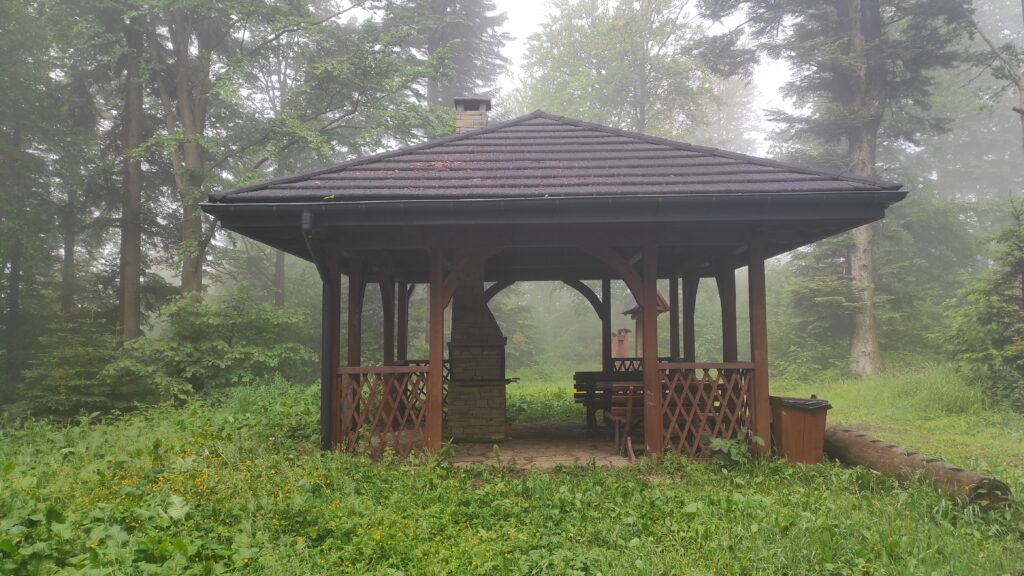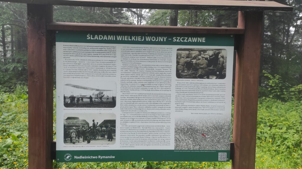 Usiedliśmy tu tylko na krótki odpoczynek. Uzupełniliśmy kalorie posiłkiem i napojem i ruszyliśmy w dalszą drogę. Wkrótce po prawej stronie mijamy stare cerkwisko wsi Przybyszów.