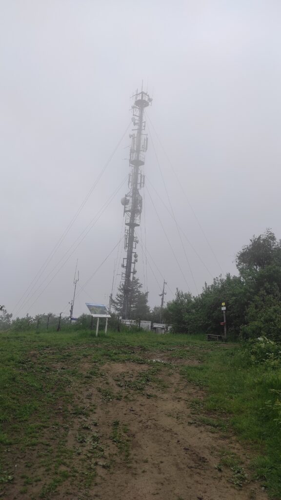 Po nieco ponad 3 godzinach od chwili opuszczenia Puław Górnych dotarliśmy na Tokarnię (778 m npm). Ostatni fragment podejścia wiódł przez otwarte polany. Na szczycie znajduje się wieża przekaźnikowa. Dzięki temu wkroczyliśmy trochę do cywilizacji, mieliśmy zasięg, mogłem choć przez chwilę posłuchać mojego ulubionego Radia 357.