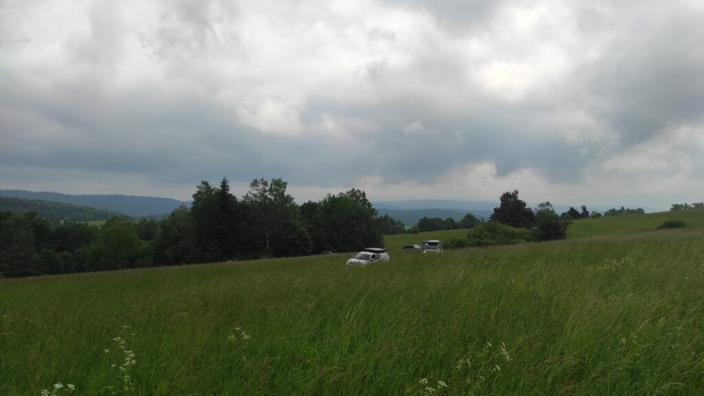 Przed Wahalowskim Wierchem (666 m npm) minęła nas kawalkada samochodów terenowych. Korzystając z weekendu wybrali się w góry na piknik.
