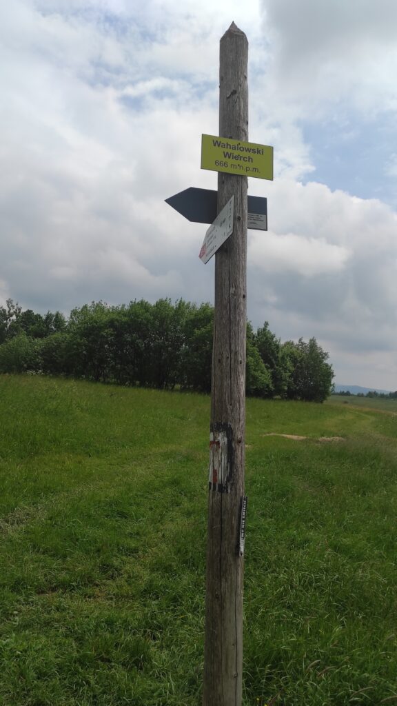 Okazało się, że właścicielem tych rozległych terenów jest znajomy kierowcy pierwszego auta. Z nim ucięliśmy sobie krótką pogawędkę. Chciał nas podwieźć kawałek pod górę na szczyt Wahalowskiego Wierchu ale jako twardzi piechurowie Głównego Szlaku Beskidzkiego grzecznie podziękowaliśmy i powoli pięliśmy się pod górę.