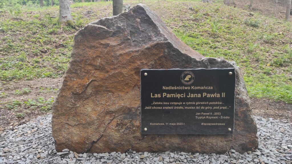 Powoli zbliżamy się do Komańczy. Tuż przed Schroniskiem natknęliśmy się na obelisk pamięci Jana Pawła II. Obelisk został ustawiony prawie dokładnie miesiąc temu.