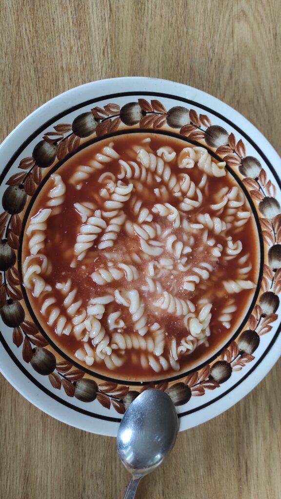 Wkrótce docieramy do Schroniska w Komańczy, gdzie zatrzymaliśmy się na podładowanie akumulatorów. Marcin zamówił kwaśnicę, ja wreszcie mogłem nacieszyć podniebienie rosołem.