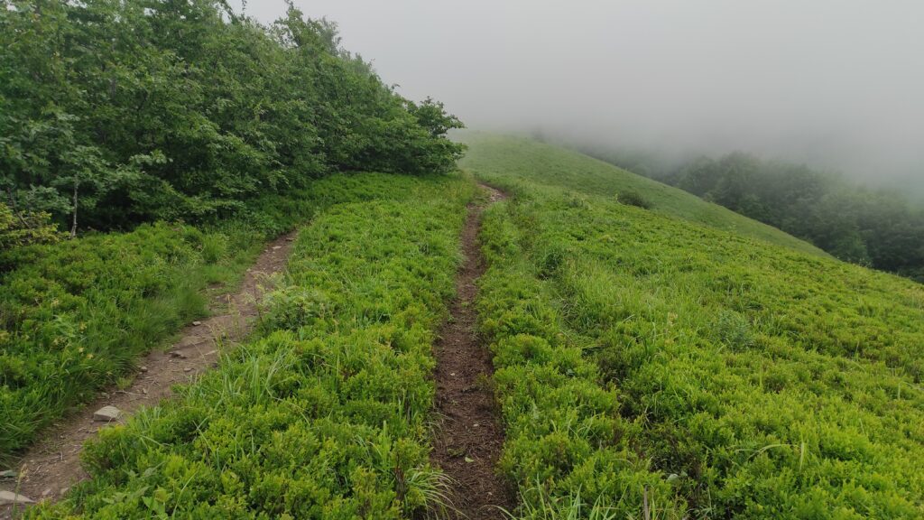 Kolejnym szczytem na naszej drodze tego dnia było Duże Jasło (1153 m npm). Niestety, widoków ani na Małym ani na Dużym Jaśle nie uświadczyliśmy. Wszystko dookoła spowite było mgłami.