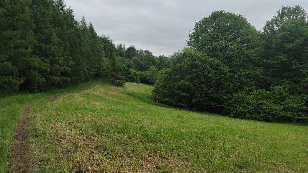 Przed nami ponad 500 metrów w górę. I już na początku był fragment z ostrym podejściem. Szlak jak wczorajszy był śliski, rozdeptany przez uczestników Biegu Rzeźnika.