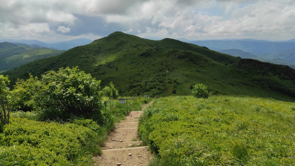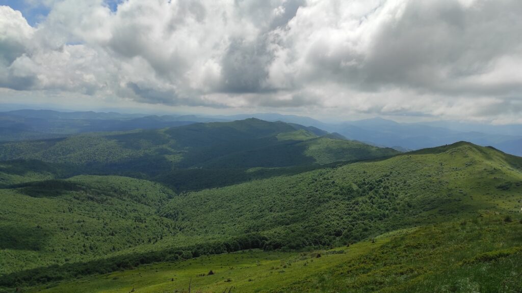 Z Halicza zostało nam już w zasadzie tylko schodzenie w dół. Podejść było niewiele więc mogliśmy jeszcze podziwiać widoki po obu stronach grani. Po prawej polskie góry a po lewej ukraińskie.