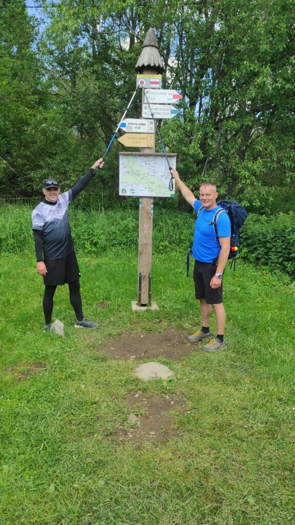 Ostatnie osiem kilometrów szlaku to już monotonna utwardzona droga potem asfalt. Ciężko się szło bo ani widoków nie było ani innych atrakcji. Ale na samym końcu czekała na nas kropka wyznaczająca początek/koniec GSB. Dla nas był to długo wyczekiwany koniec wędrówki szlakiem.