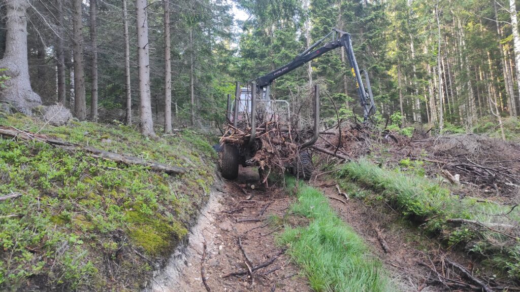 Leśnicy porządkowali teren i nie było możliwości przejść wyznaczonym szlakiem. Musiałem wspiąć się na pobocze i obejść lasem traktor.
