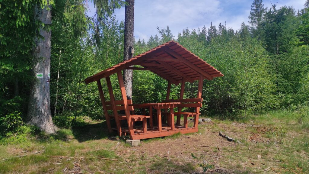 Z Lubawki znowu asfalt aż do Leszczynowych Wąwozów którymi docieram na Lipowe Siodło. To miejsce w którym znajduje się wyglądająca na dość nową wiata. Nie omieszkałem odpocząć w niej i posilając się.