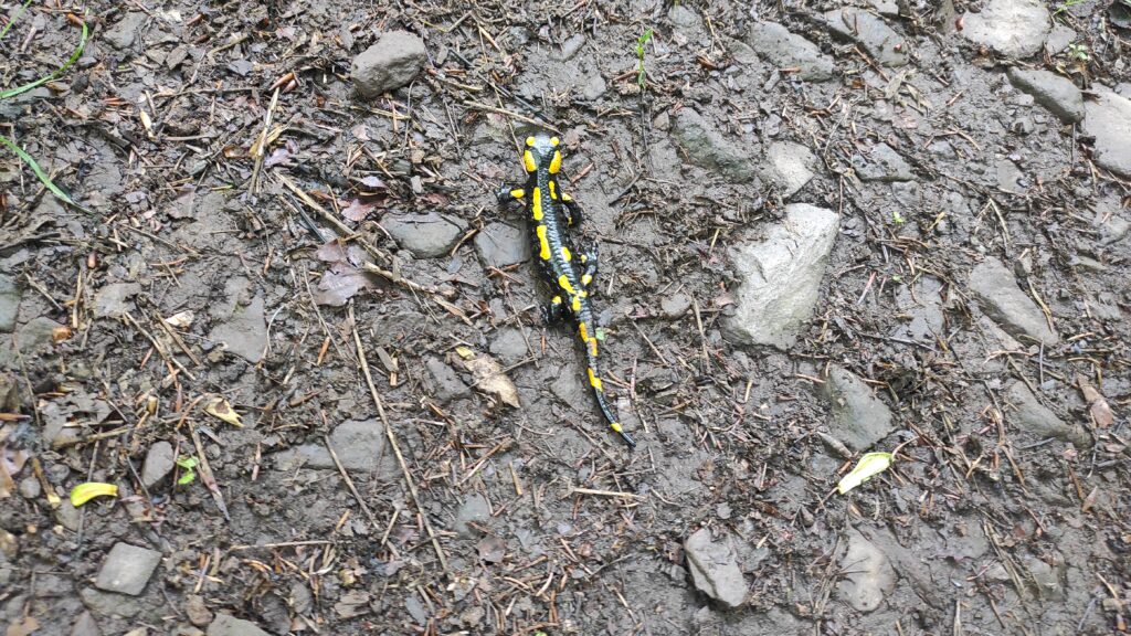 A po drodze wspomnienie zeszłorocznego GSB. Salamandra zawłaszczyła szlak.