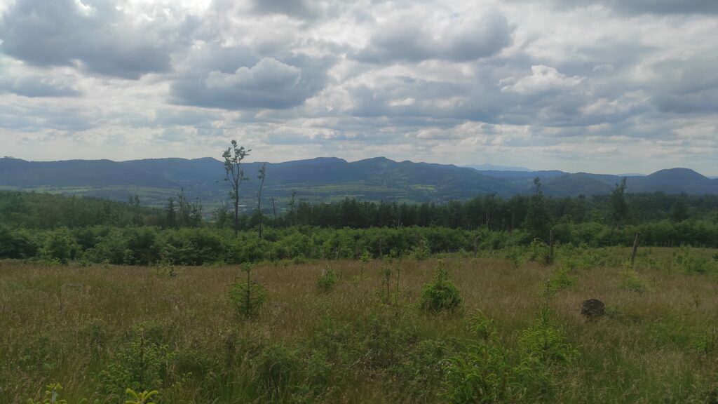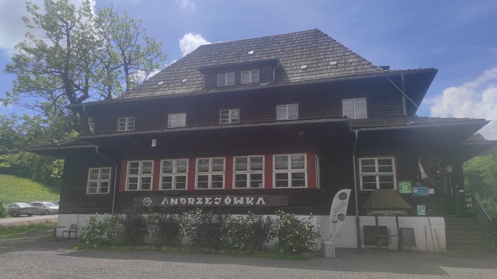 Z kopalni znowu ostre zejście w dół. A potem już wyglądanie zabudowań Schroniska PTTK Andrzejówka gdzie zatrzymałem się na przerwę obiadową.