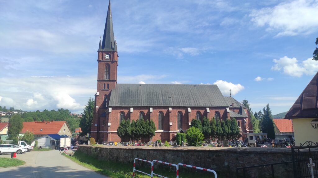 Po kilkudziesięciu minutach szlak pośród pól sprowadza mnie to „śląskiej Jerozolimy” czyli Wambierzyc z sanktuarium Matki Boskiej Wambierzyckiej Królowej Rodzin.