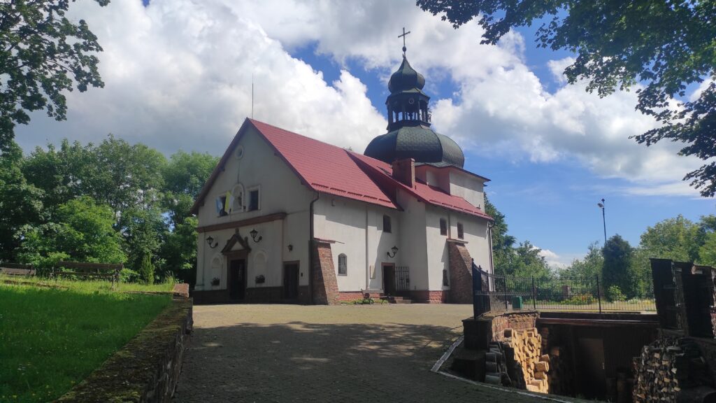 Po kilkunastu minutach ruszam dalej w drogę. Niestety przede mną kolejne strome podejście na Górę Wszystkich Świętych z Sanktuarium Matki Bolesnej na Kościelcu.