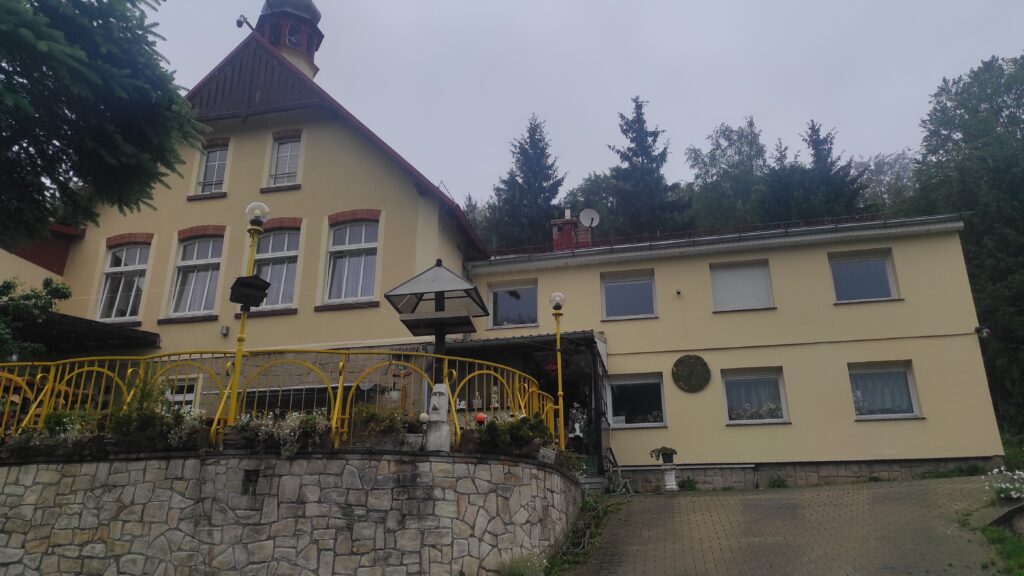 Z Wambierzyc początkowo wędruję szosą ale szybko ją opuszczam wspinając się ścieżką przez łąki na zbocza Taboru, wzniesienia nad wsią upstrzonego licznymi kaplicami Kalwarii Wambierzyckiej. Stromym podejściem osiągam grzbiet Golca i szosą asfaltową dochodzę do wsi Studzienno. Moja kwatera nie leży przy szlaku muszę więc zejść jeszcze około 700 m w dół. I wreszcie jest, udało się dotrzeć do celu w tym ciężki dniu. Czas na relaks.