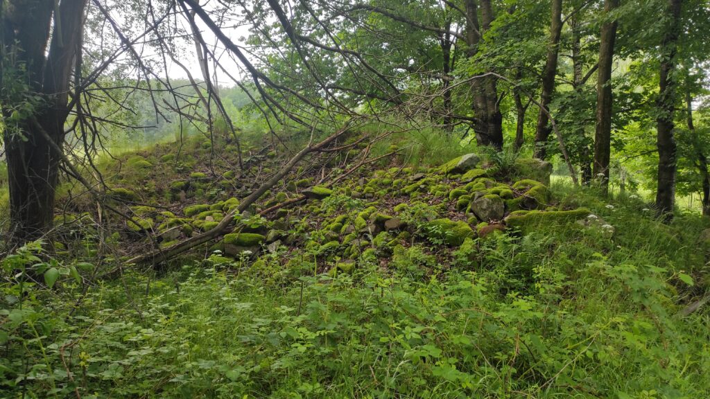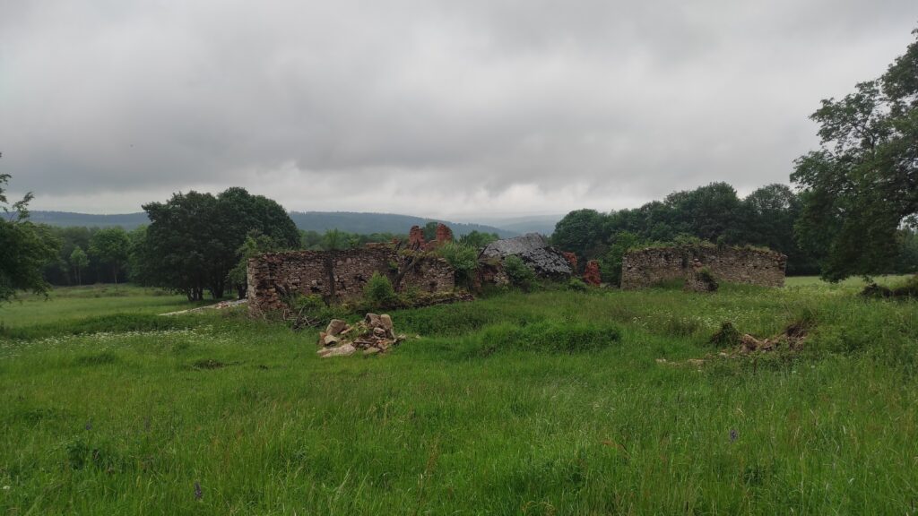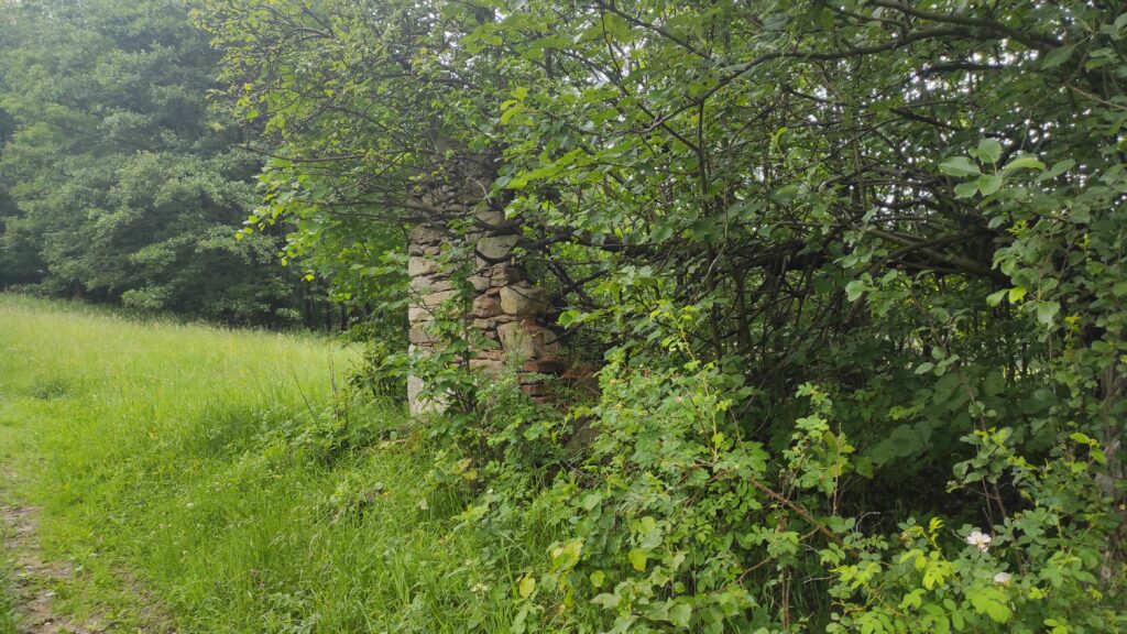 Szlak wkrótce odbija w lewo ale cały czas w dół. Co chwilę mijam pozostałości niegdysiejszych zabudowań.