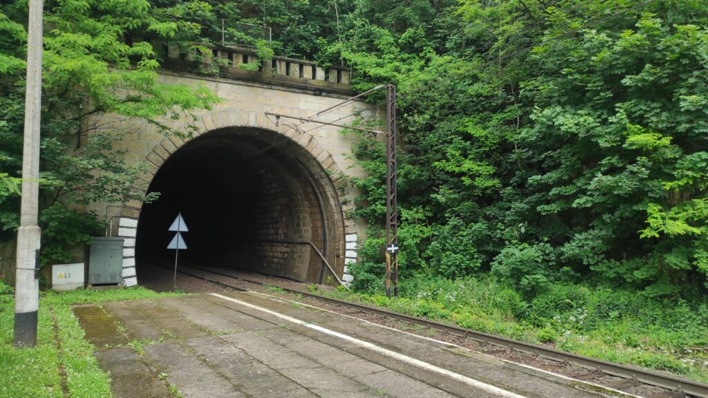 W Długopolu zgubiłem szlak. Doszedłem do stacji kolejowej i według mapy powinien tuż przed tunelem przejść na drugą stronę torów i tam odnaleźć ścieżkę.