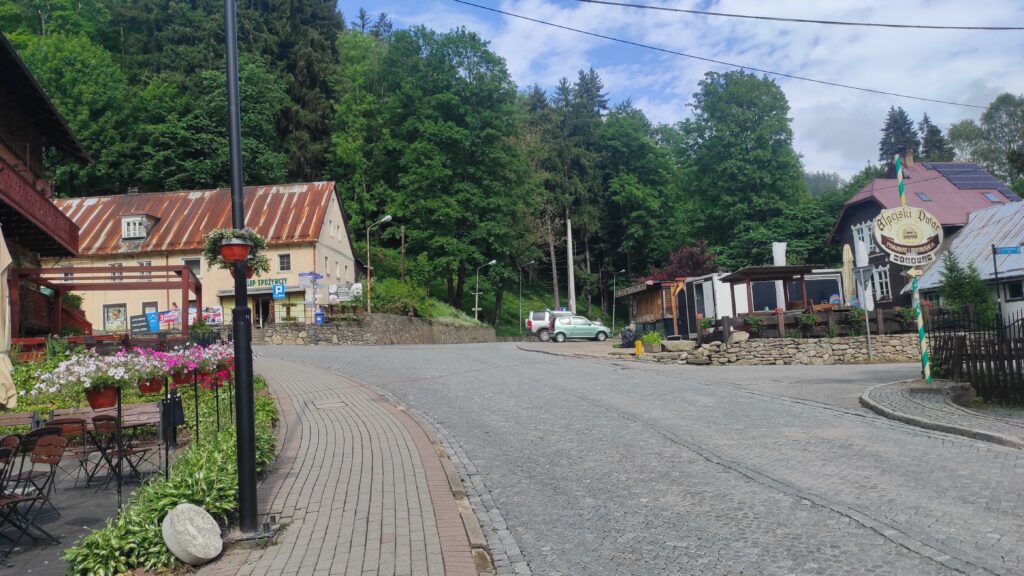 Ze schroniska idę przez kilka kilometrów w dół szosą zwaną Autostradą Sudecką. Tylko niech nikogo nie zmyli ta nazwa bo szosa ta niewiele ma wspólnego z autostradą bo raz że jest dość wąska a dwa że bardziej przypomina wiejskie wertepy.