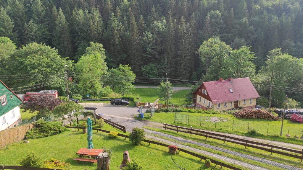 Potem jeszcze kilkanaście metrów podejścia i docieram do mojej noclegowni. Czarodziejka – tak ładnie się nazywa. Ciekawe czy będę miał tu czarodziejskie sny? Widok z okna jest piękny.