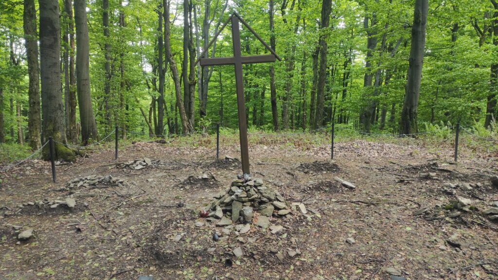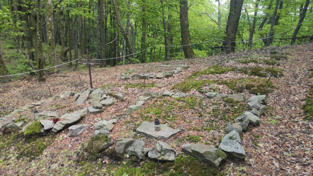 Ostatni fragment szlaku to wspinaczka na południowy szczyt Kamienia, przy którym co kilka chwil mijaliśmy cmentarze wojenne z okresu I wojny światowej.