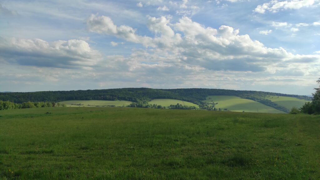 Po ponad jedenastu godzinach wędrówki wyszliśmy z lasu i ukazała się panorama okolic Ożennej.